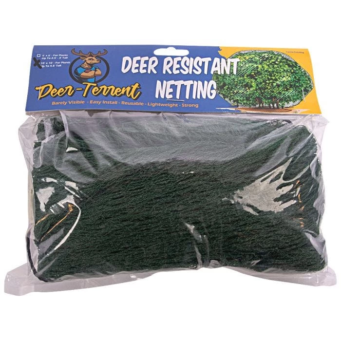 Easily installed and removed, Deer-Terrent Plant Netting Cover protects plants and shrubs of various sizes, the small will cover shrubs up to 2.5-3 feet tall and the medium will cover up to 4.5 feet tall. The unique attachment design eliminates the worry of the netting blowing away or moved by animals. While on plants the netting will not impede new growth. Easy to remove in the spring when food becomes more available for deer. Wrap a little tighter to provide protection from snow and ice