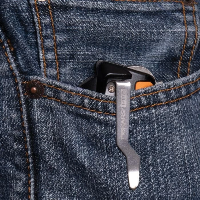 The FiskarsPro Folding Utility Knife has deep grooves and contours. This ergonomic design accommodates multiple grips, making this knife perfect for any task. Its slim profile and attached belt clip make it easy to take with you on the go.