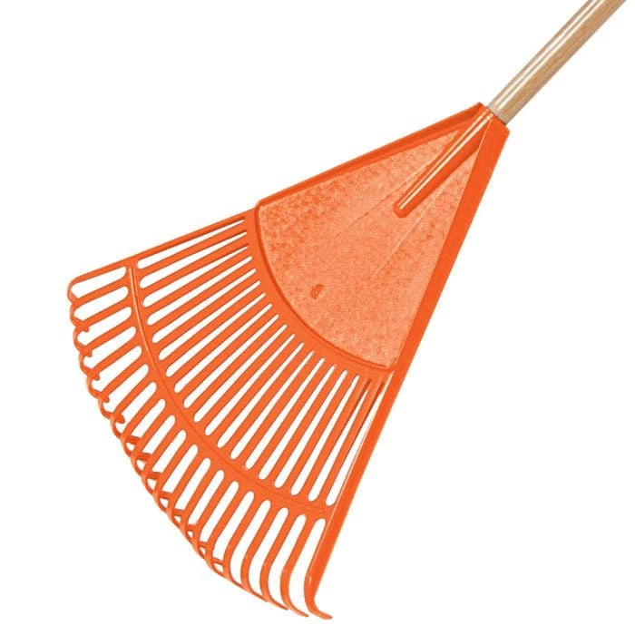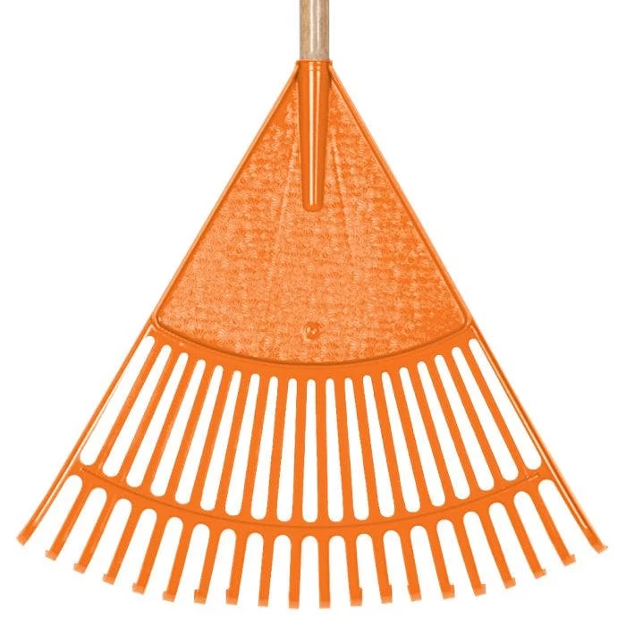 Leonard 18in Poly Rake includes high-quality ribbed poly tine construction, which increases the stiffness and strength of each tine, ensuring that you get more leaves with every stroke. The bright orange color of the rake helps your crew find all of them at the end of a long day. The partially ribbed tine construction of the rake maintains tine shape and resists cracking, even in cold weather. It makes gardening and landscaping easy and efficient.