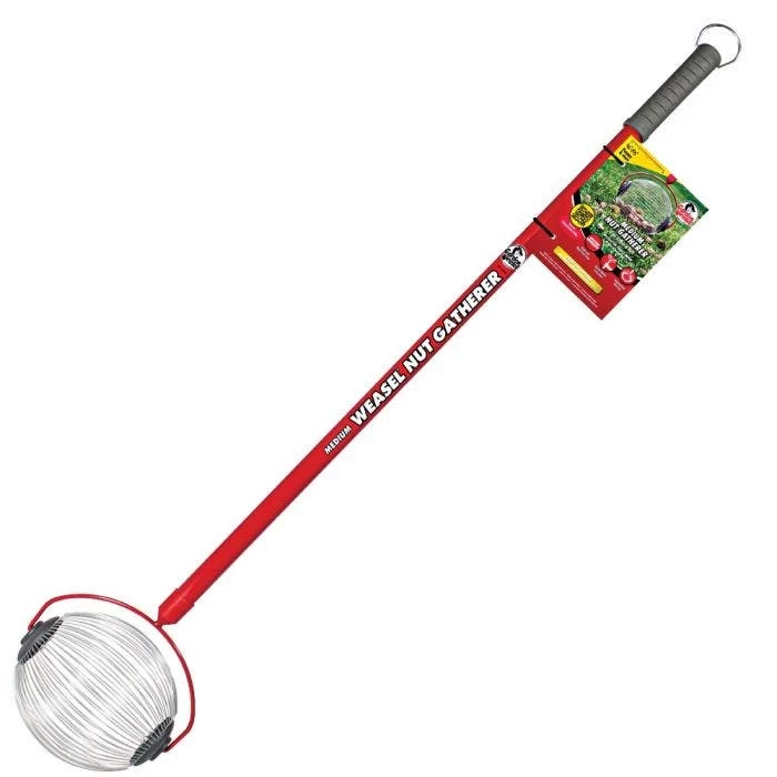 The Medium Weasel Nut Gatherer can pick up a variety of objects including acorns (medium & large), buckeyes, butternuts, chestnuts, crabapples, filberts, sweet gumballs, hazelnuts, hickory nuts, pecans, walnuts, lemons, limes, tangerines, golf balls, tennis balls, and shotgun shells. However, it is not recommended for small acorns (pin oak, scarlet oak, and shingle oak), beechnuts or chinquapin.