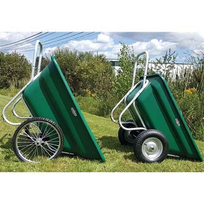 US made with industrial strength polyethylene, contractor grade anodized aluminum frame and wear resistant wheels. Strong and lightweight. Unique front-tilt design. Rust proof and leak free, no matter the climate. Built to last decades without breaking…no bolts to tighten or replace, no rust – nearly maintenance free. Patented Snap-on Tub technology. Perfectly balanced cart. Design that survived the test of time. The last garden cart that you will ever own. Best warranty in the industry. Can carry loads of up to 600 lbs. (400 lbs. for 20-in wheel model). Assembly Required.