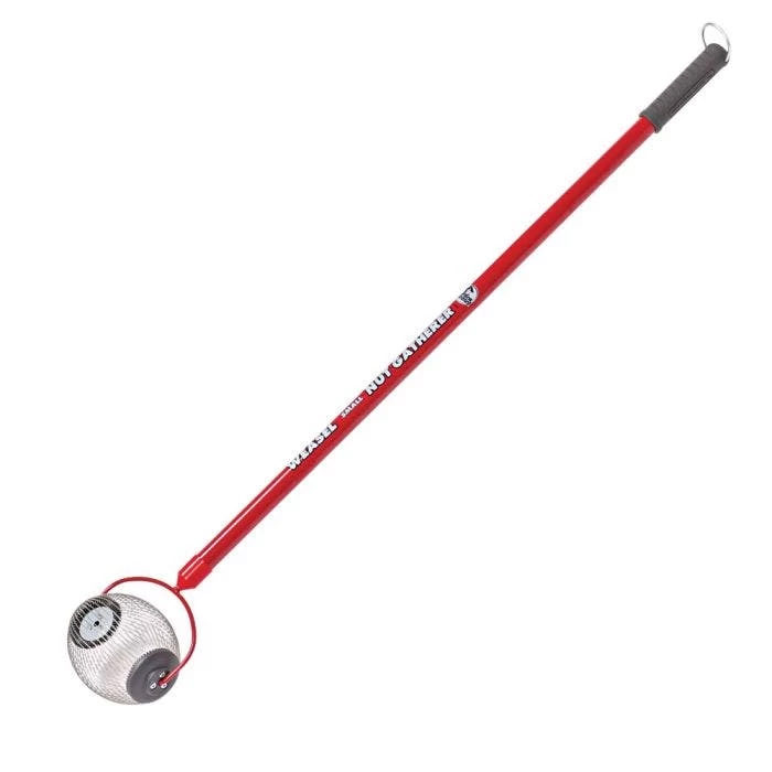 Picks up objects 3/8″ to 3/4″ in size such as small acorns, nuts, buckeyes, and other similar sized objects. Capacity is approximately 1/2 gallon. The Small WeaselNut Gatherer is an easy to use rolling pick up tool for acorns and more. No bending over. Saves time. Simply apply the nut gatherer to the area to pick-up with a back-and-forth motion. Repeat the process until the gathering basket is at full capacity. Spread the tines apart over a bucket to empty.