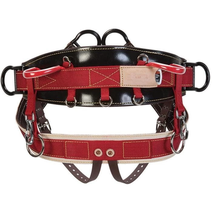 The Weaver Work Positioning Saddle features a seat strap with fixed D rings, 1″ neoprene leg straps, and an extra-wide back for maximum comfort. The seat strap floats on the waist belt for easier positioning, and it is lined with soft brown leather. The saddle also has four 1″ nylon webbing utility straps, two 2″ nickel-plated snaps, and two accessory loops in clear rubber tubes to resist wear.